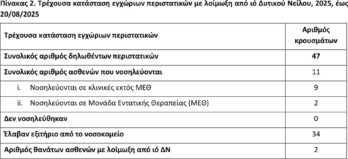 Σχετικά με τους δύο θανάτους, αναφέρεται πως οι θανόντες ήταν άνω των 78 ετών και απεβίωσαν λόγω λοίμωξης από τον ιό με επιπλοκές στο Κεντρικό Νευρικό Σύστημα.