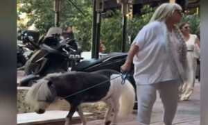 Health Rodos: Το ασυνήθιστο περιστατικό σημειώθηκε χθες στο κέντρο της Αθήνας, στην οδό Πανεπιστημίου, όταν μια γυναίκα εμφανίστηκε κρατώντας από το λουράκι ένα πόνυ.