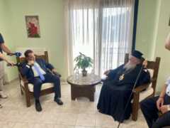 Ο υπουργός συναντήθηκε με τον μητροπολίτη Φιλίππων Νεαπόλεως και Θάσου Στέφανο στις εγκαταστάσεις του ιδρύματος και είχε την ευκαιρία να συζητήσει μαζί του για την προσφορά της εκκλησίας στην κοινωνική οργάνωση και δομή της χώρας.