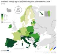 Οι νέοι στην Ευρωπαϊκή Ένωση (ΕΕ) εγκαταλείπουν το πατρικό σπίτι τους λίγο μετά τα 26 τους χρόνια κατά μέσον όρο. Ωστόσο υπάρχουν μερικοί που βιάζονται πολύ και άλλοι (όπως οι Έλληνες) οι οποίοι… σπεύδουν βραδέως.